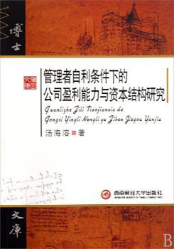 图书简介 | | 本书立足于我国上市公司的市场环境和经营环境,研究在我国当前的制度背景下,公司盈利能力与资本结构方面的相关问题。 |