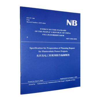 图书简介 | | 本书是根据中国水利水电出版社出版的《光伏发电工程规划报告编制规程》NB/T32046-2018翻译的,著作权归国家能源局所有。在使用过程中,如出现异议,以中文版为准。 |