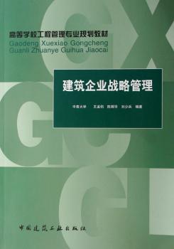 图书简介 | | 本书以现代企业战略管理理论为基础,结合建筑行业的特点,通过建筑企业战略环境分析、内部条件分析,以及竞争优势分析,研究提出具有鲜明特色的建筑企业战略管理理论与实证案例。 |