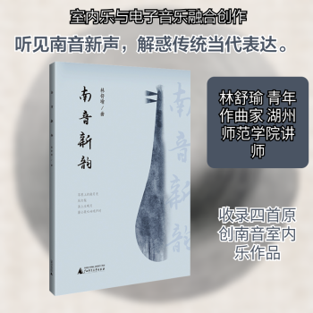 图书简介 | | 本书包含四首作品:《草原上的南月光——为室内乐而作》,《风打梨——为琵琶与电子音乐而作》,《海上生明月——为男高音与室内乐而作》,《蒲公英吹响哨声时——为长笛与电子音乐而作》。作曲家以“结构-重塑”为主要创作思路,以传统室内乐的乐队配置为整部套曲的基础,以先锋电子音乐的表现方式为切入点,展现出南音风格的新魅力,体现南音的当代可塑性。 |
