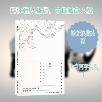 图书简介 | | 本书讲述整个镇上的人都染上了“犀牛病”而变成犀牛,并且以变成犀牛为美。主人公贝朗热一直竭力保持自己的形体不变,即要保持自己的独立人格。他在剧终时说道:“我绝不投降!”这是一句绝望的呼喊,引发观众和读者对于异化主题的思考。 |
