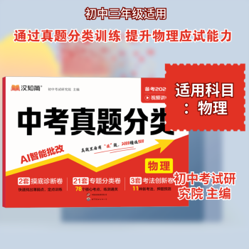 图书简介 | | 《中考真题分类物理》是为初中生量身打造的中考物理复习试卷,严格遵循中考考纲与命题趋势,精选全国各省市经典真题,通过科学分类与专项训练,助力学生攻克核心考点、提升物理应试能力。试卷设置摸底小卷,可帮助学生快速定位力学分析、电路计算、光学成像等薄弱环节;分类卷按“力学”“电学”“热学”“光学”“电磁学”等模块划分;新考法板块聚焦实验探究拓展题、生活物理应用题等新兴题型,契合新课标对科学思维与实践探究能力的考查要求。 |