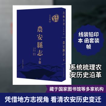图书简介 | | 本书于民国十七年(1928)成书,郑士纯监修,朱衣点总纂,线装铅印本,8卷1函6册。藏于农安档案馆、吉林大学图书馆、吉林市图书馆、辽宁省图书馆、大连市图书馆、黑龙江省图书馆、国家图书馆、北京大学图书馆、天津市图书馆、上海市图书馆、浙江省图书馆、广东省图书馆、甘肃省图书馆。本书内容涵盖农安县地理、职官、民治、教育、财政、司法、交通、实业、人物、古迹、礼俗、物产、慈善、兵事、艺文,系统记录了农安县自古以来的历史沿革、社会变迁及地方风貌等内容,为了解农安县的历史沿革提供了资料,具有很高的史料价值,为后世学者提供基础性参考。 |