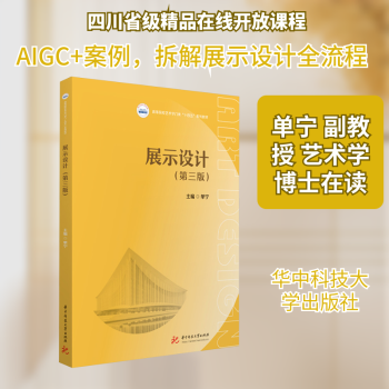 图书简介 | | 本书共分为八章,第一章为展示设计概述,主要包括展示设计的概念、分类、现状、发展趋势等内容;第二章为展示设计的发展历程,介绍展示设计的起源及发展、世博会的起源、世博会的发展历程3个方面的内容;第三章为展示设计的基础知识,介绍形式美法则的应用、人体工程学的应用、展示的品牌策略、展示设计施工图4个方面的内容;第四章为展示设计的程序,介绍展示设计阶段与展示施工阶段2个方面的内容;第五章为展示的专项设计,介绍展示空间设计、展示照明设计、展示色彩设计、展示版面设计、展示道具设计、展示材料的特性与选择6个方面的内容;第六章为展示的模型制作,介绍展示模型概述、展示模型制作步骤、展示模型欣赏3个方面的内容;第七章为生成式人工智能在展示设计中的应用,介绍什么是AIGC、AIGC与展示设计2个方面的内容;第八章为展示作品赏析,介绍中国核动力科技馆设计解析、“瓷如意”中国馆设计解析、“百年党史百年土地”展馆展示设计、鲁南制药启达力健康文化馆展示设计、烟台核医疗科技馆展示设计5个方面的内容。教材不仅配套了慕课视频、大量实际商业或博物馆设计案例、行业规范、实拍视频等扩展学习内容,且每节均有任务实践,每章均有实训项目。 |