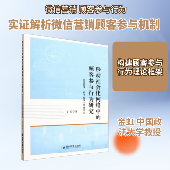图书简介 | | 本书通过探究影响顾客参与企业微信营销的前置因素、分析线上与线下因素对顾客参与行为的不同影响力,以及顾客参与所产生的行为结果,帮助企业根据预期目标开发有效的战略措施来提高微信营销的绩效。作者基于对现有顾客参与行为的前置因素进行文献回顾,提出并构建顾客参与行为及其行为结果的理论框架,根据已检验和发展的顾客参与行为测量工具,实证检验顾客参与所产生的行为结果,重点是检验其对消费者口碑传播和品牌忠诚度的影响。根据微信营销中顾客参与的影响因素、参与行为水平及行为结果之间的整体关系框架,通过诠释法、理论分析法等方法分析其带来的管理启示,探讨企业应该如何选择和利用顾客参与行为的各个影响因素,从而合理引导顾客的参与水平,得到预期的消费者口碑传播方向,提高消费者的品牌忠诚度。 |