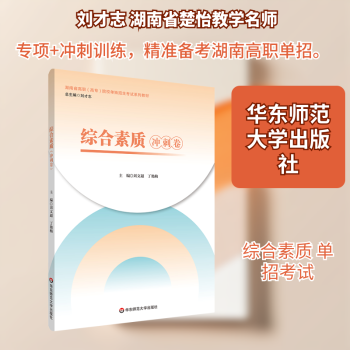 图书简介 | | 本书为湖南省高职院校单独招生考试综合素质项目的复习试卷,由拥有自命题权的单独招生学校组织十几家学校参与编写。本书依据湖南省高职各校单招考试大纲编写,内容和考点全面,命题精准度高。采用专项卷和综合卷结合的形式,先进行专项练习,后模拟考试的递进方式助力考生备考。本书配有二维码,附答案详解,并每年进行时事更新。本书主要作为平时备考和考前冲刺用,9月开学是学校进行专题教学环节,可使用本书的专题试卷,寒假至次年3月考前适用综合试卷备考冲刺。 |