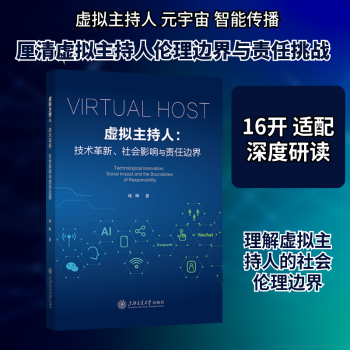 图书简介 | | 本书聚焦智能媒体时代虚拟主持人的崛起,剖析人工智能、深度学习等核心技术原理与发展历程,探讨其对传媒行业生态、文化传播及公众认知的深远影响。同时关注隐私保护、算法偏见等伦理挑战,强调建立行业伦理准则的必要性,阐释其在文化多样性传播、价值观传递中的责任与作用。 |