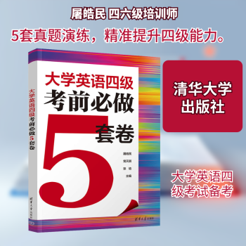 图书简介 | | 本书包含两部分内容。试题部分包含5套全真排版的试卷及答案速查,帮助考生进行实战演练,熟悉考试流程与题型。解析部分针对试卷中的写作、听力、阅读和翻译四大题型详尽讲解。其中,写作解析涵盖思路点拨、参考范文和话题词汇,听力解析涵盖题目解析和听力原文,阅读解析对选词填空、段落匹配和仔细阅读分别进行解题分析和要点指导,翻译解析涵盖译文、难点注释和话题词汇。《大学英语四级考前必做5套卷》旨在通过高质量的考前训练与精准透彻的解析,帮助考生有效查漏补缺,掌握答题方法,提升应试能力。 |