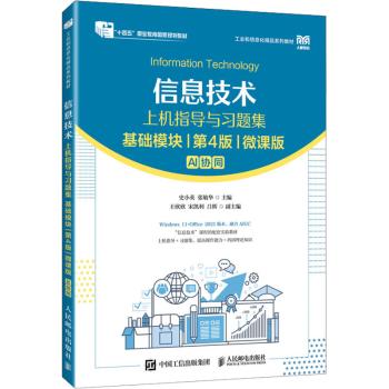 图书简介 | | 本书共分为两部分:第一部分是上机指导,该部分从文档处理、电子表格处理、演示文稿制作、信息检索、新一代信息技术概述、信息素养与社会责任6个方面组织内容,读者可以按照《信息技术(基础模块)(第4版)(微课版)》中的内容结合本书中的指导进行上机操作;第二部分是习题集,该部分根据《信息技术(基础模块)(第4版)(微课版)》中的内容编写测试题目,题目类型包括单选题、多选题和判断题3类,方便读者进行自测练习。 |