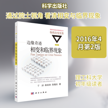 图书简介 | | 本书通过对相变和临界现象的介绍,阐述热力学和统计物理的基本概念,从熵的引入、统计配分函数,到对称破缺、标度律和普适律。同时也描述了研究相变现象的基本理论方法,包括平均场近似、标度分析、重正化群、统计模型精确解和计算机数值模拟等,还介绍了相变研究的最新进展,如有限系统的临界现象和量子相变。 |