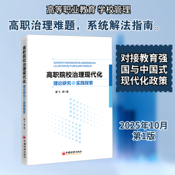 图书简介 | | 本书聚焦高职院校治理现代化,分析高职院校治理现代化的理论意涵(逻辑理路、核心要素和实践向度),总结组态视角下高职院校高效能治理模式,提出高职院校治理现代化的评价指标体系。并以北京财贸职业学院为例从多方面多维度展示高职院校治理现代化的实践案例及学情调研报告。介绍了推进我国高职院校治理现代化的重要平台——高等职业教育治理体系建设发展联盟的演进脉络和重大活动,并基于对近百所治理联盟高职院校的实证调研,分析了高职院校治理现代化的现状、瓶颈与提升路径。 |