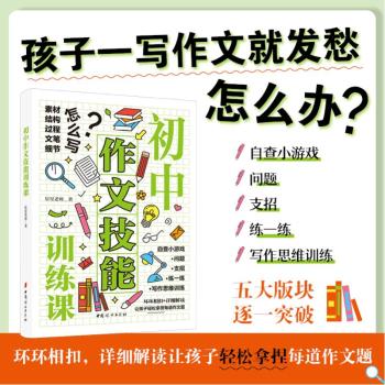 图书简介 | | 本书作者星星老师是一位有着丰富的文学创作经验的语文老师,针对中学生写作问题,结合多年写作经验和一线作文辅导经验,为孩子总结了一套行之有效的写作训练体系,从选材、立意、结构、语言、细节等角度,通过62个一学就会的写作技巧帮助孩子们解决在写作文时最发愁的五大问题:素材怎么办、结构怎么办、过程怎么办、文笔怎么办、细节怎么办。书中针对这些问题,作者用生动有趣的语言传授写作技能,精挑细选了名家名篇名句作为写作示范,也从孩子们的日常作文中摘录了一些需要改进的文段,一起进行详细解读,告诉孩子名家文章好在哪里,可以怎么模仿和借鉴;孩子们的习作问题在哪里,可以怎么修改和提升。 |