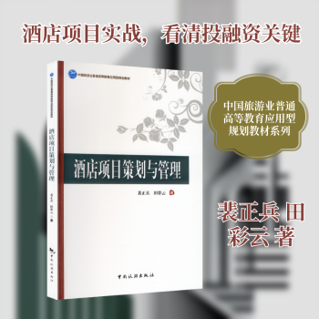 图书简介 | | 本书内容包括:酒店项目策划与投融资概述、酒店项目战略分析、酒店项目市场分析、酒店项目创业团队、组织机构与人力资源分析、酒店项目投资分析、酒店项目融资分析、酒店项目风险管理。 |