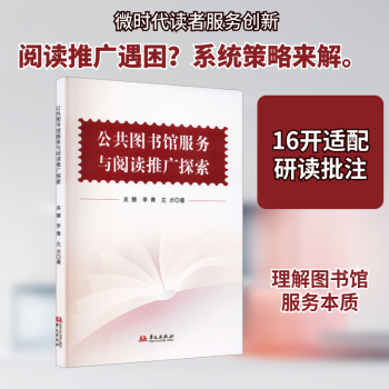 图书简介 | | 本书以公共图书馆概念为切入点,接着介绍公共图书馆信息服务建设的理论,以及对图书馆读者的研究。进而探索公共图书馆读者服务的创新模式,然后介绍多种图书馆资源的共建模式,同时探究阅读推广活动的举办方式及宣传策略,最后讨论新型数字技术对公共图书馆未来发展的影响。本书以理论与实践相结合,对于公共图书馆服务与阅读推广的全流程具有指导性意义。 |