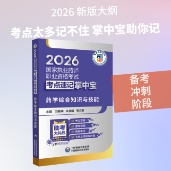 图书简介 | | 本书依据2026年国家执业药师职业资格考试最新考纲和指南编写。指南极简浓缩版,书中内容按章节编排,各章节分两个版块。其中,“必备考点精编”采用图表为主、文字为辅的形式,总结梳理新指南的重点内容,对大纲要求的考点覆盖率达到70%,条理清晰,重点突出,内容实用。“高频考点速记”精选历年真题中常考考点内容,分类整理,方便对比记忆。 |