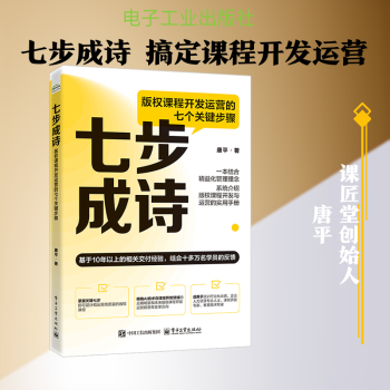 图书简介 | | 本书通过7个章节详细阐述了从选题、构建大纲到素材规划、教学设计、标准套件制作、品牌包装命名,直至版权课程运营的全过程。作者基于10年以上的相关交付经验,结合十多万名学员的反馈,不仅提供了实操工具和技巧,帮助读者设计和运营高质量的版权课程;还基于培训行业的发展趋势对AI技术在课程开发领域的应用进行了展望,探讨了未来版权课程开发运营的潜在变革方向。 |
