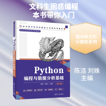 图书简介 | | 本书分为两大部分,第一部分介绍Python语言的基础知识,包括程序控制结构、序列数据结构、函数和文件等基础内容;第二部分介绍数据分析方法及其应用,主要包括Numpy科学计算、Pandas数据分析和数据可视化。内容的组织和编排注重文科专业学生的认知规律,循序渐进,代码步骤清晰、注释详细,方便学生学习;每章除了有讲解各知识点的示例,还配备了综合案例;在数据分析部分,以“订单”数据集为分析对象,介绍了从外部数据源读取数据、进行数据预处理和数据分析、再以图表可视化展示分析结果的全过程,在介绍数据分析方法的过程中,也特别注重数据分析思维的传授。 |