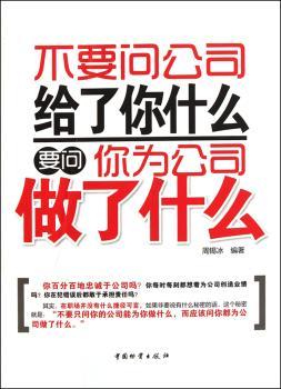 图书简介 | 本书通过不要只问公司每月给你多少薪水,不要只要求公司给你提供舒适的工作环境,不要只要求公司给你提供升迁的机会等内容,向读者阐述了作为一名职工应该具备的素质与修养。 |