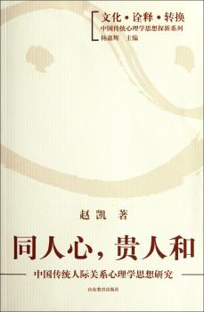 图书简介 | | 本书按照现代社会心理学的体系进行比较分析研究,探讨了中国传统人际关系心理学思想的理论基础,就儒、墨、道、法各家在人际关系建立与发展的原则、影响人际关系的社会心理和人际关系的心理调适等方面进行了深入研究,指出了中国传统人际关系心理学思想的现代意义。 |