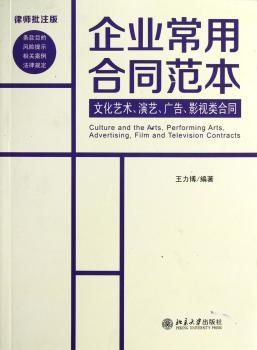 图书简介 | | 本书共分五部分:第一部分为文化艺术领域合同,共12章;第二部分为演艺文化领域合同,共13章;第三部分为广告传媒领域合同,共10章;第四部分为影视文化领域合同,共27章;第五部分为文化与传媒企业涉及的其他合同,共4章。 |