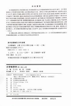 图书简介 | | 本书为大学物理学上册,有力学和电磁学两篇内容,包括共8章,包括质点运动学、动力学、刚体力学基础,流体力学简介,狭义相对论,电荷与电场等内容。 |