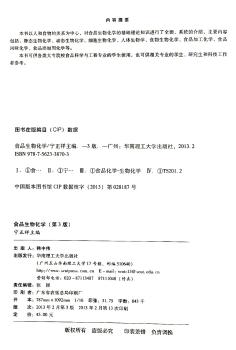 图书简介 | | 本书以人和食物的关系为中心,对食品的生物化学的基础理论知识进行了全面、系统的介绍,主要内容包括:静态生物化学、动态生物化学、细胞生物化学、人体生物学、食物生物化学、食品加工化学、食品风味化学、食品添加剂化学等。 |