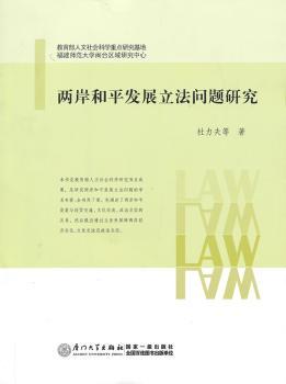 图书简介 | | 本书主要内容包括:两岸和平发展与两岸关系的法治化;两岸和平发展与经贸关系;两岸和平发展与文化交流;两岸和平发展与政治互信;两岸经济交往与立法等。 |