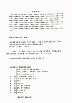 图书简介 | | 本书以饭店发展需要和餐饮岗位实际工作过程为主线,以餐饮真实服务为项目载体,确定本课程的内容为建立餐厅、经营餐厅、餐厅服务、管理餐厅等四个模块。 |
