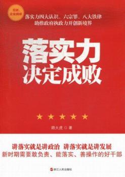 图书简介 | | 本书主要内容包括:敢负责、能落实、会操作的干部最受欢迎;落实是第一生产力;落实不到位是思想不到位;落实不到位,说到底是作风问题;表面文章,无法落实;贯彻不力,不了了之等。 |