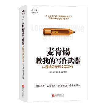 图书简介 | | 本书根据作者高杉尚孝在麦肯锡管理咨询公司工作的丰富经验,详细介绍了世界一流公司的商务文案写作方法,是一本让你学会逻辑思考方法、提高写作能力的实用工具书。 |