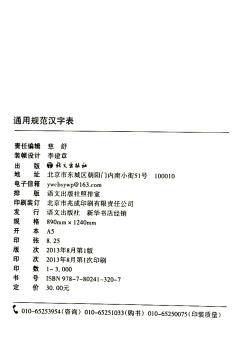 图书简介 | | 本表收字8105个,分为三级:一级字表为常用字集,收字3500个。二级字表收字3000个。三级字表收字1605个。 |