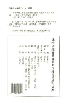 图书简介 | | 本书选收著名文献专家、藏书家傅惜华先生生前所藏古典戏曲曲谱类图书188种,古典戏曲身段谱类图书80种,所收剧本大都注有工尺谱或详细的舞台提示。 |
