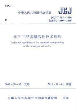 中华人民共和国行业标准地下工程渗漏治理技术规程:JGJ/T 212-2010