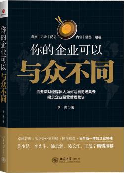图书简介 | | 本书通过对近几年一些热点问题、热门企业的评论和对一些企业家、国学大师的访谈,再现了中国经济发展与变化的一个个瞬间,揭示了企业经营管理的秘诀和商战的心得,帮助企业家们重塑企业的核心竞争力,打造独一无二的企业。 |