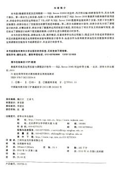 图书简介 | | 本书共两部分,第1部分为上机实验,包括15个实验,介绍了SQL Server 2008数据库功能和操作使用技术。第2部分为课程设计指导。 |