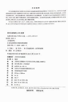 图书简介 | | 本书共分9章,主要内容有电路的组成和基本定律、电路的基本分析方法、电路分析中的常用定理、动态电路、单相正弦交流电路、正弦稳态电路的分析、三相交流电路分析、互感电路和非正弦周期电路。 |