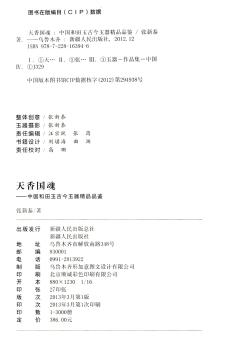 图书简介 | | 本书收录玉雕作品包括古代和田玉玉器珍品与现代和田玉玉器精品两部分。所收录的古代玉器珍品,包括各个历史时期的玉器珍品,有的珍藏在北京故宫博物院、国家博物馆等处,有的为民间藏品。所收录的现代玉器精品,为马进贵、赵敏、马学武、郭海军、樊军民等中国玉雕大师的作品。 |