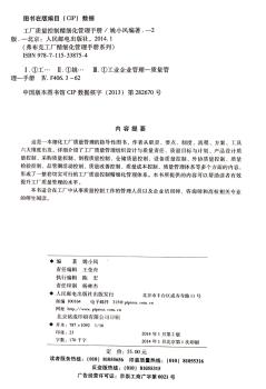 图书简介 | | 本书作者从职责、要点、制度、流程、方案、工具六大维度出发,详细介绍了工厂质量管理组织设计与质量责任、质量目标与计划、产品设计质量控制、采购质量控制、制程质量控制、仓储质量控制、设备质量控制、外协质量控制、质量检验控制、品管圈活动控制、质量改善控制、质量成本控制、质量管理体系等多个方面的内容。 |
