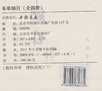 图书简介 | | 《本草纲目》是我国明代杰出的医药学家李时珍以毕生的精力,经二十七年艰苦劳动写成的一部中药学巨著。该书系统地总结了我国十六世纪以前药物学的经验。 |