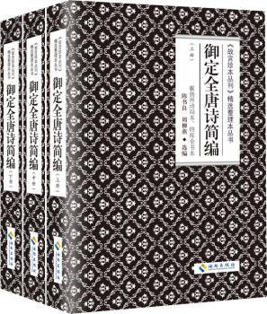图书简介 | 《御定全唐诗》全书共九百卷,共收录唐代诗人二千二百余人的诗作四万八千九百余首,是中国规模最大的一部诗歌总集。此次出版的《御定全唐诗简编》以扬州诗局本和四库全书本的《御定全唐诗》为底本,包括了全部诗人,诗作则从中精选出4714首(约占原书的十分之一),并做了简要而专业的注释,而诗人排序、卷次一仍其旧,集资料性、阅读性与欣赏性于一体。 |