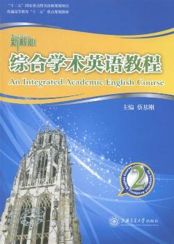 图书简介 | | 《综合学术英语教程2》(An integrated academic english course ‖)是“核心学术英语(ERP)系列教材”主干教材《综合学术英语教程》中的第二册。本教材把听、说、读、写、译有机地融合在一起,发展学生的综合学术英语能力。 |