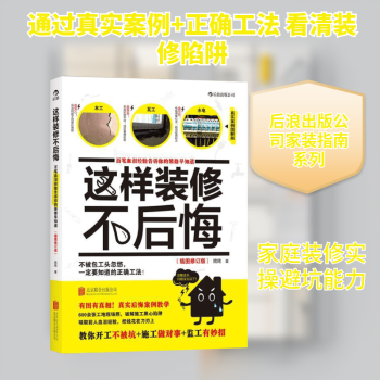 图书简介 | | 本书选用600多张实拍照片直击施工现场,曝光大量“我很后悔”常见装修失败案例,详细解说你必须要懂的家装原理与正确工法,全面通晓家庭装修的各个步骤:从装修前的准备工作,到拆除、水电、泥瓦、木工、厨卫、油漆等施工环节,以及如何看估价单、抓预算、签合同。 |