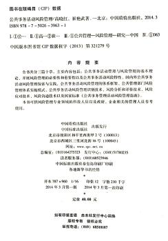 图书简介 | 本书共分三篇十章,主要内容包括:公共事务活动管理与风险管理的基本理论、开展风险管理的必要性和重要性以及公共事务活动风险特性、国内外公共事务活动风险管理探索与实践等。 |