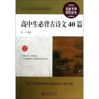 图书简介 | | 本书所收集的40篇古代诗文,都是高中生必须熟读和掌握的中国古代诗文的名篇佳作。由著名古典文学专家对这些篇目的进行注释、译析,可以帮助学生掌握重要的知识点,并引导学生从不同的角度去审视古诗文的内容和风格,去体验古诗文的审美意境。 |