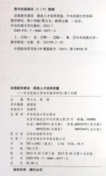 图书简介 | | 本书分为教育教学理念、教学研究与改革、专业与课程建设三个栏目,收录了《民族院校少数民族大学生政治认同概念分析》、《中央民族大学美术学院装潢设计系教改实践》、《提升公共管理类专业课程教学效果的探索与思考》等文章。 |