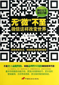 图书简介 | 本书以“微信”为主要研究对象,详细介绍微信的发展趋势、基本功能、使用方法以及成功案例,深度剖析微信创造财富的能力;还从微信营销的角度,详细介绍了微信的营销模式、营销方法和营销禁忌,并从企业和个人两个角度出发,指出了提升微信力的不同方法和途径,使所有人都能在这个飞速发展的微信时代创造属于自己的价值。 |