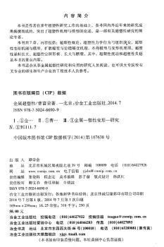 图书简介 | | 本书共7章,内容包括:超塑性概论,超塑性力学行为与组织演变,超塑性变形机理与模型,扩散蠕变与位错蠕变机理,本构模型与变形机理图等。 |
