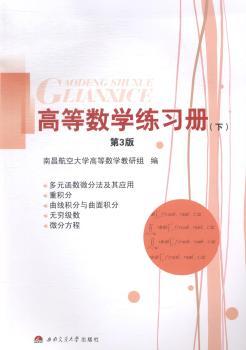 图书简介 | | 本书是同济大学应用数学系主编的《高等数学》(下册)(第五版)的配套练习册。内容包括多元函数微分法及其应用,重积分,曲线积分与曲面积分,无穷级数,微分方程。根据本科院校高等数学课程教学的基本要求和教学时数,合理地分割每次课(2学时)的教学内容,并以每次课配置一次练习的原则进行编写。 |