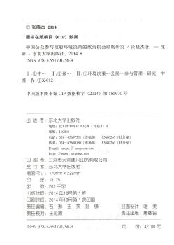 图书简介 | | 本书作者首先运用多元线性回归分析方法验证政治机会结构对中国公众参与政府环境决策的主导作用,其次分析了政治机会结构各变量的历史演变,最后运用案例分析方法详细了解剖政治机会结构各变量对中国公众参与政府环境决策的影响机理等内容。 |