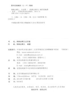 图书简介 | | 本书主要向养狗或即将养狗的人提供一些养狗的知识,并介绍带狗狗可以在北京及周边做些什么,让狗狗主人和狗狗能够多些陪伴,享受生活。内容包括:养宠达人聊出游;带狗出行小锦囊;完美遛狗路线;带狗吃西餐;带狗吃中餐等。 |